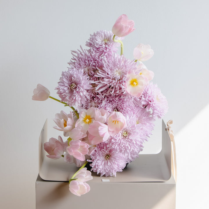 A graceful arrangement blending the softness of tulips with the richness of chrysanthemums. Chic and timeless, this bouquet adds an elegant touch to meaningful occasions or refined interiors.