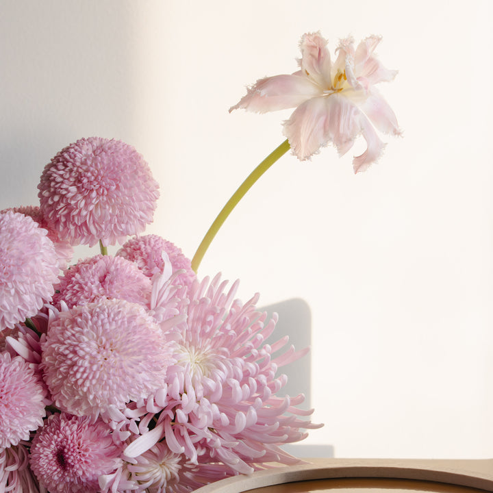 | Classic Arrangement | A timeless bouquet highlighting the delicate pairing of pink tulips and chrysanthemums. | - |