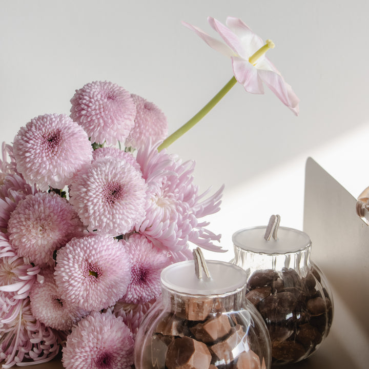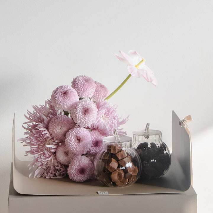 | Arrangement with Tray & Jar | Enhanced with Yeuobi jars for a modern twist—elevating the arrangement into a contemporary gift set. | Chocolates are not included. |