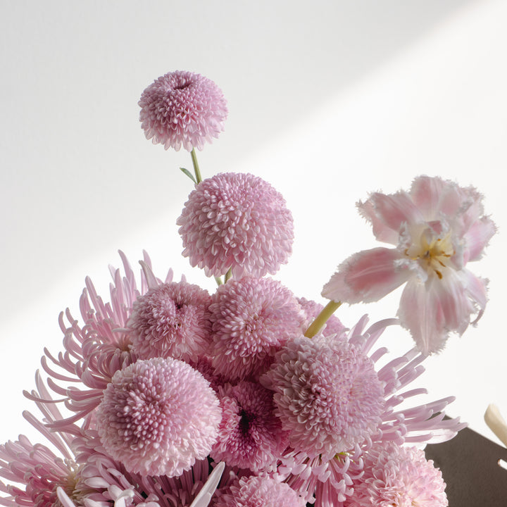 A striking floral statement combining abundant chrysanthemums with a gentle touch of tulip. Elegant and uplifting, this large arrangement is designed to leave a lasting impression at any occasion.