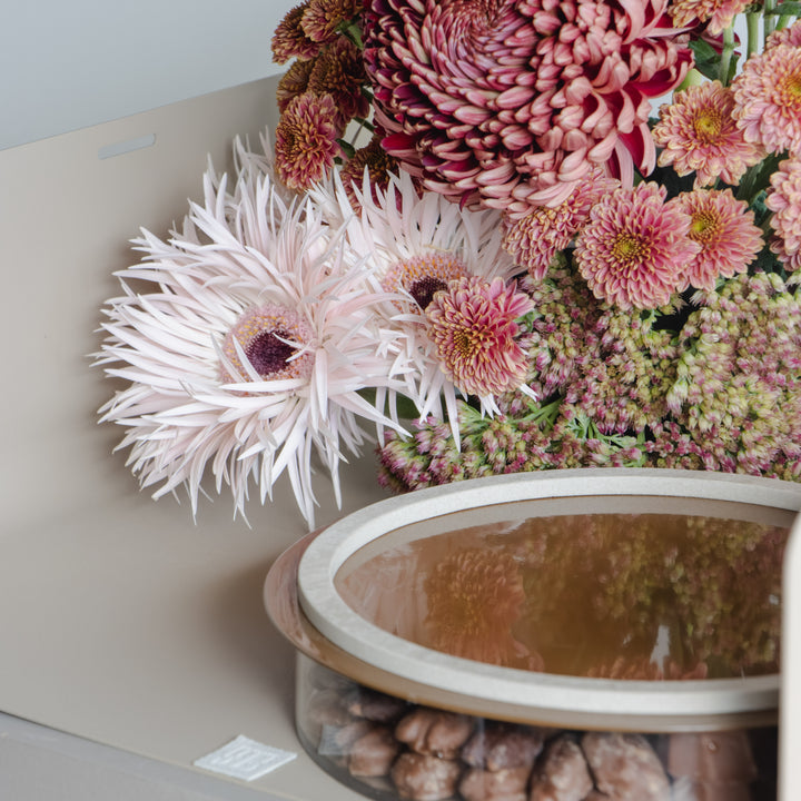 The Maison Fleur Ensemble is a timeless floral creation crafted with Kadi’s signature touch of elegance. Designed to suit every occasion, this versatile arrangement is available in refined variations - from the simplicity of a classic bouquet to indulgent pairings with trays, jars, chocolates, and luxury wrapping. Each option elevates the art of gifting into a statement of sophistication.