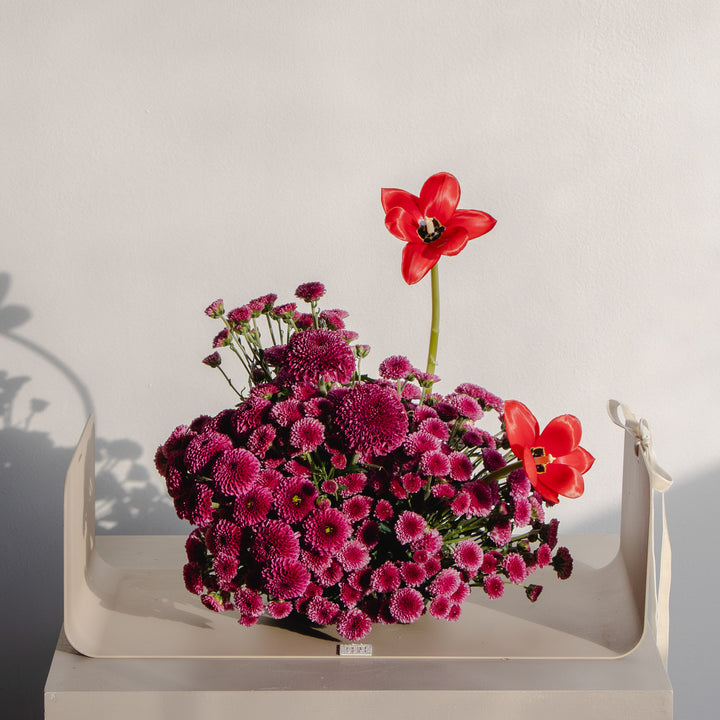 The Tulip Radiance Small Arrangement is a poetic blend of charm and sophistication. With its delicate tulips balanced against textured florals, it evokes warmth and grace—perfect for intimate gatherings, personal gifting, or adding a refined accent to any setting.