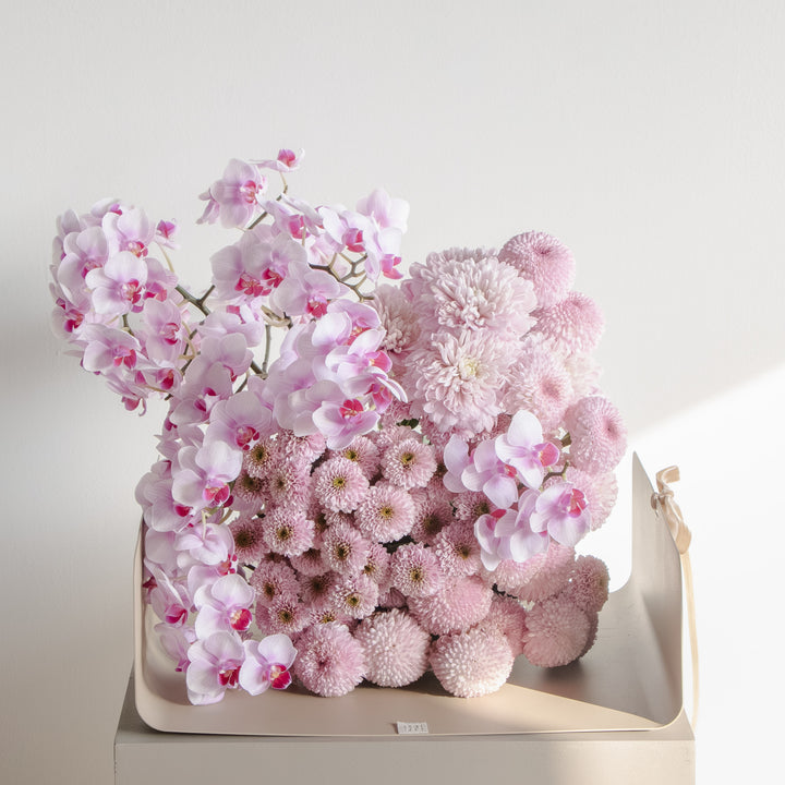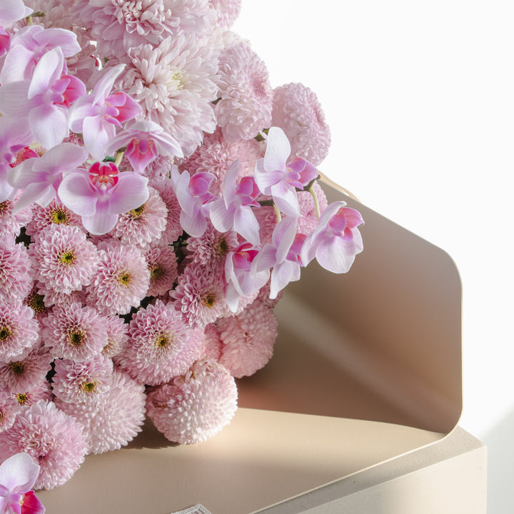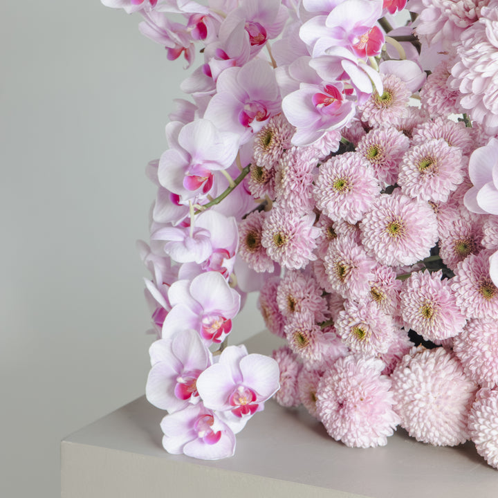 A captivating blend of orchids and chrysanthemums, this arrangement is designed to exude both elegance and vibrance. Perfect for refined interiors or meaningful gifting, it strikes a balance between modern sophistication and natural beauty, making it an unforgettable centerpiece.