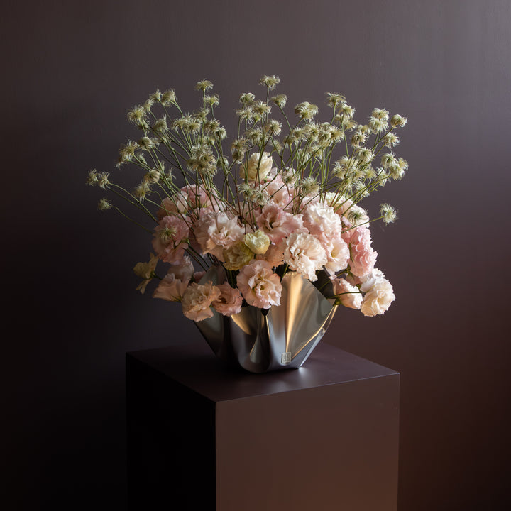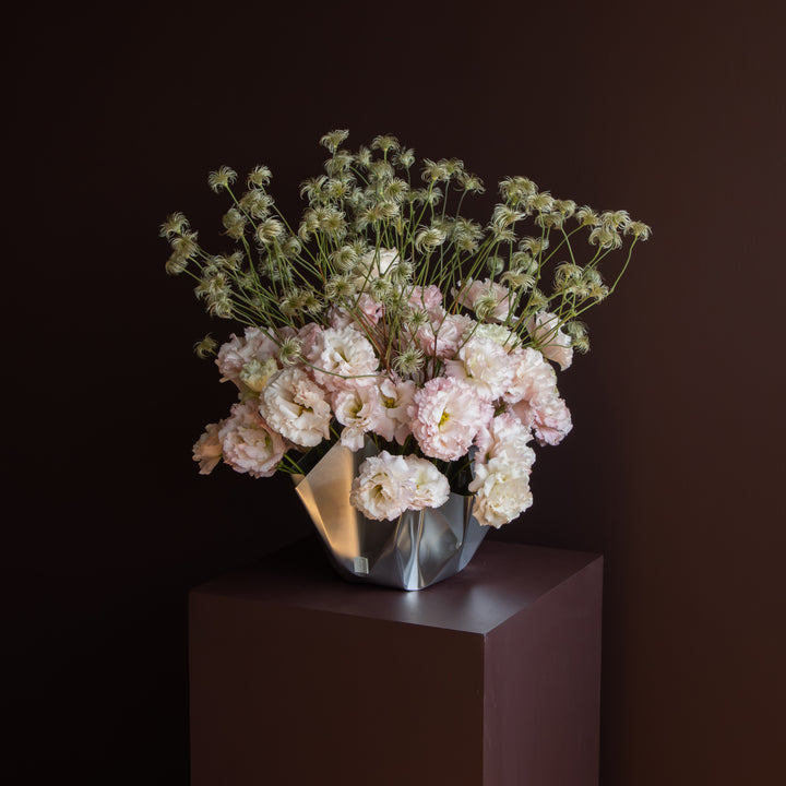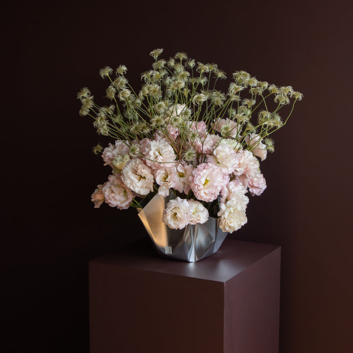 Elegant and expressive, this vase showcases a cascading blend of lilac florals and refined greens — designed for those who appreciate modern floral artistry with a luxurious finish.