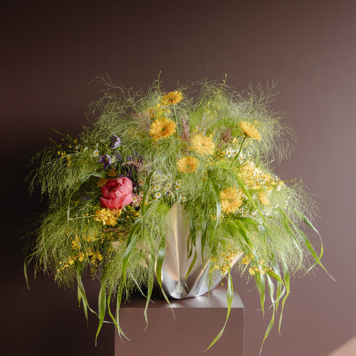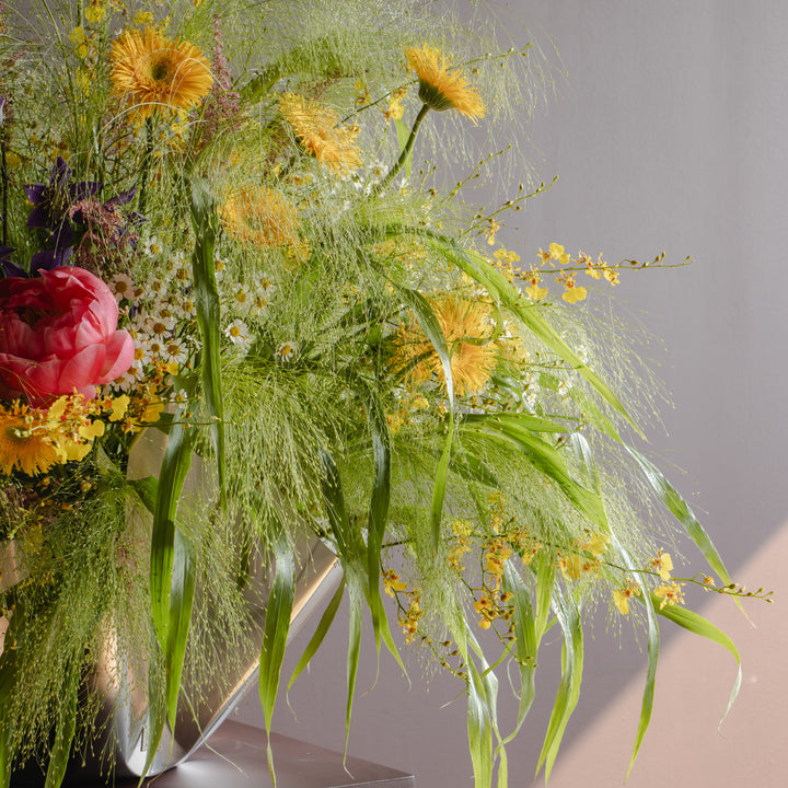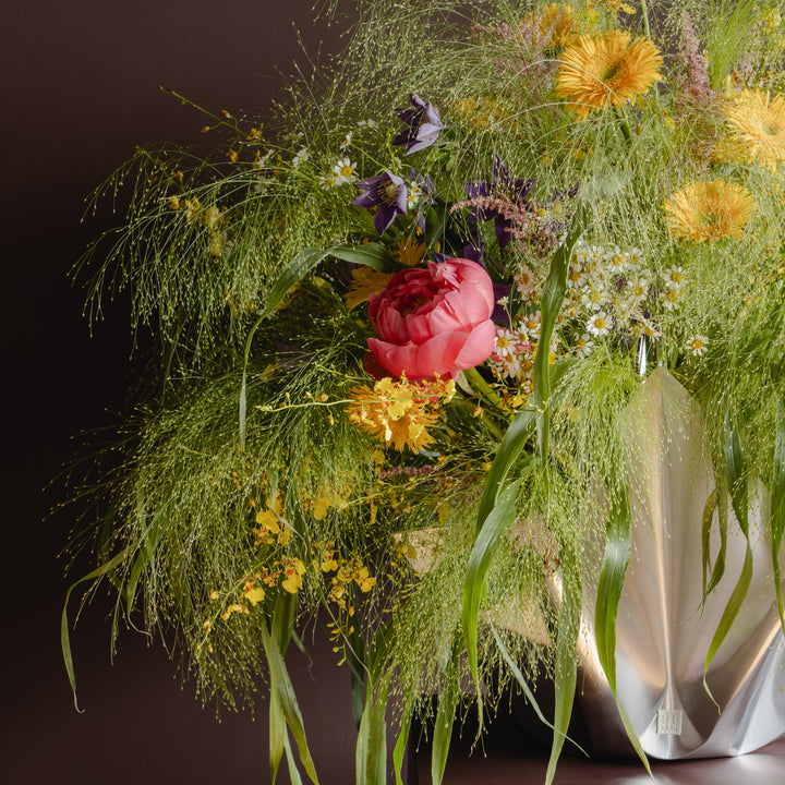 A rich and abundant floral composition bursting with color and dimension. Designed for special occasions and luxurious interiors, this piece brings artistry, scale, and sophistication to any room.
