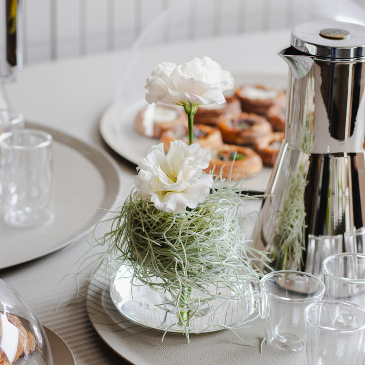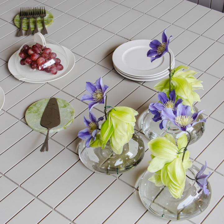 A petite accent with artisanal charm, the Bud Bloom Vase in white dotted finish is ideal for single stems or minimal styling.