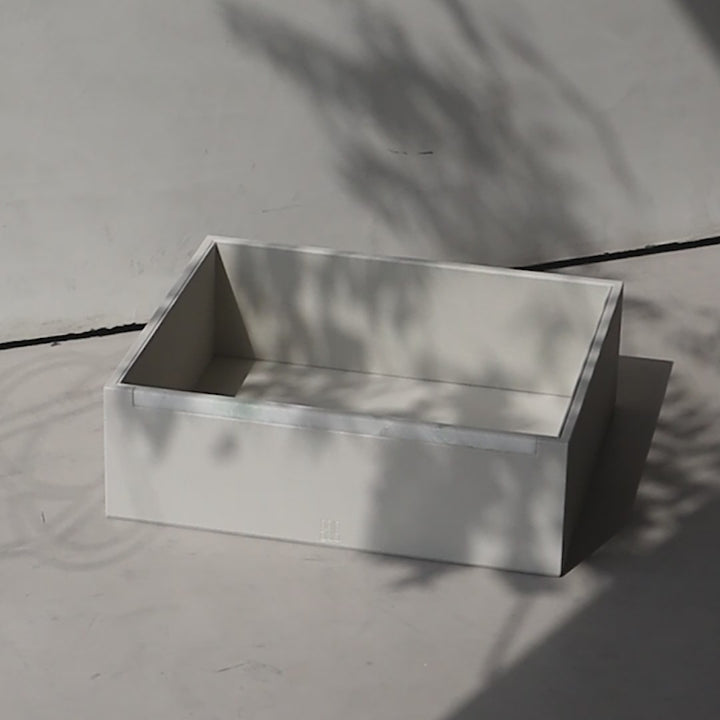 An off-white open storage box that offers a clean, polished way to keep your home organized.