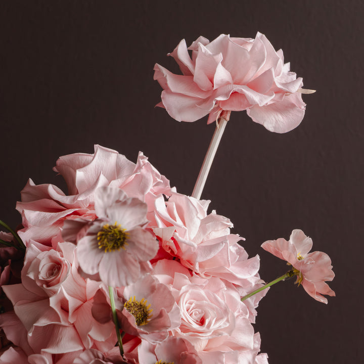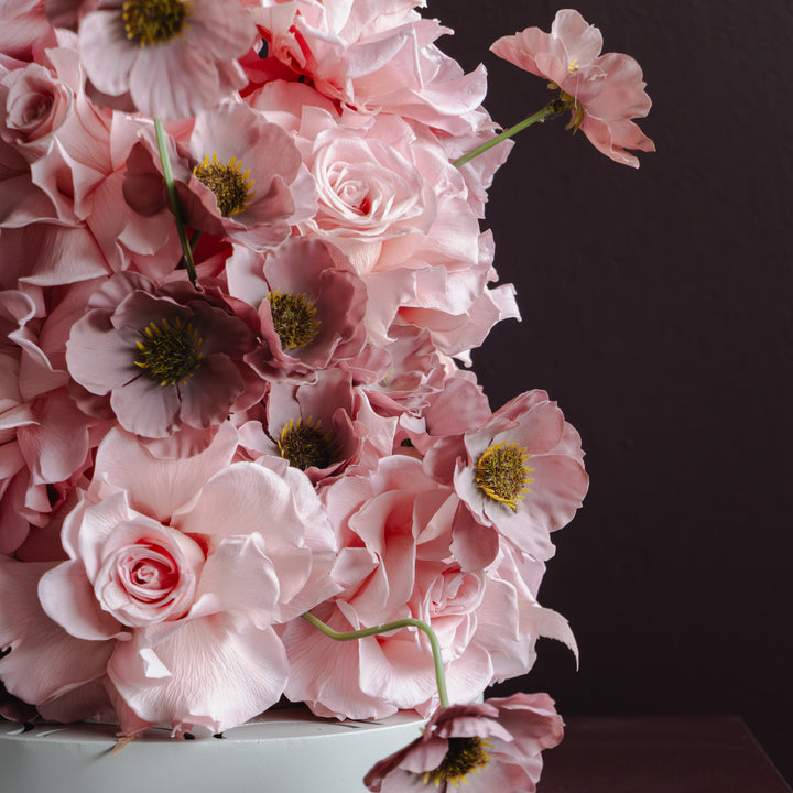A luxurious gathering of infinity roses arranged on a medium sphere stand, crafted to create height and drama. A lasting floral sculpture designed for those who appreciate enduring elegance.