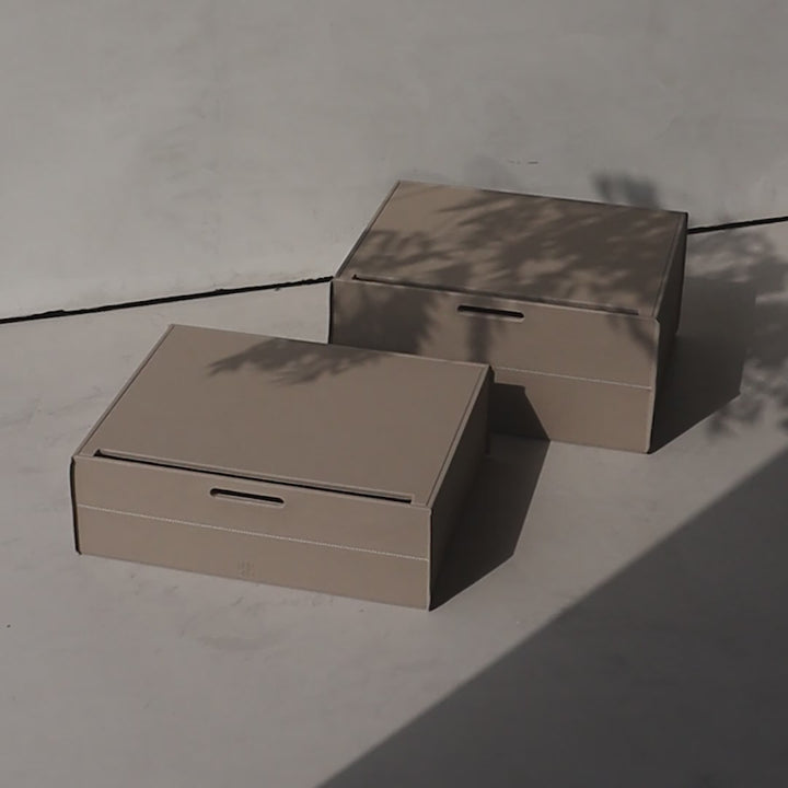 The medium ecru storage box offers generous space with a clean, minimalist aesthetic.