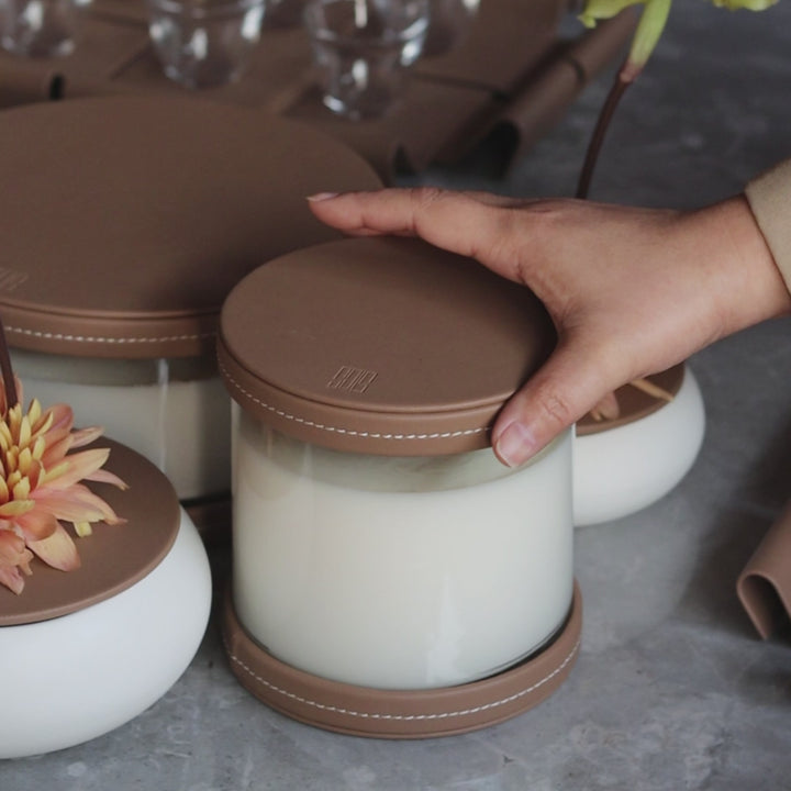 A statement candle designed to anchor interiors with warmth, depth, and understated luxury.A refined expression of craftsmanship, the KADI Knot Candle is designed to bring warmth and quiet elegance into any space. Encased in glass and finished with Kadi’s woven leather detail, it reflects balance, simplicity, and understated luxury. Ideal for creating a calming ambiance, whether for everyday moments or special gatherings.